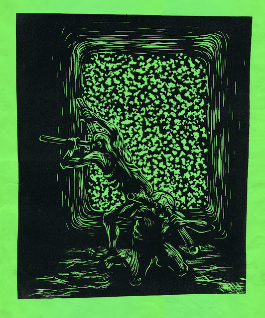 Skrapkartong och tuschlavering tidigt 80-tal.