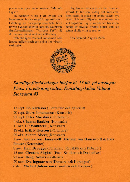 1995 satt jag samman en föreläsningsserie för eleverna på Konsthögskolan Valand.